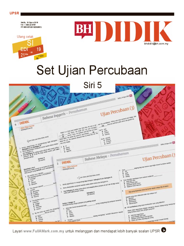 Soalan Ujian Percubaan Upsr Didik Jawapan Siri 1 2019 Bumi Gemilang
